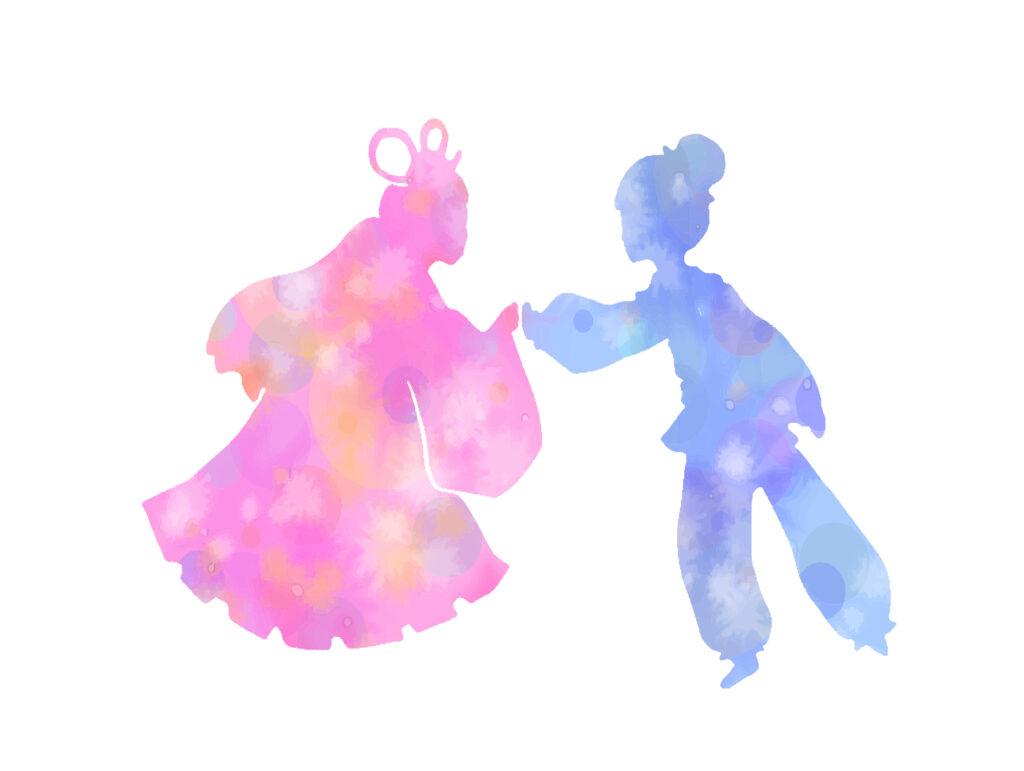 織姫は神様の娘で、機織りがとても上手な働き者でした。ある日神様は、同じく働き者の牛飼いの青年・彦星を織姫と引き合わせます。二人はすぐに恋に落ち、神の許しもあってめでたく結婚しました。